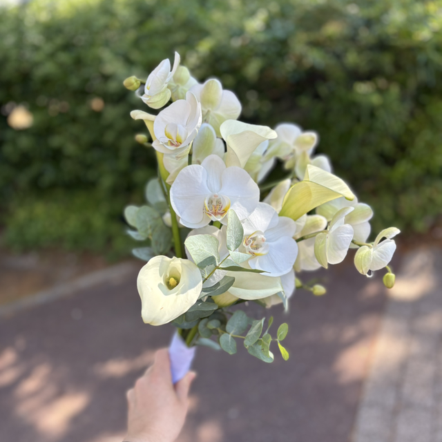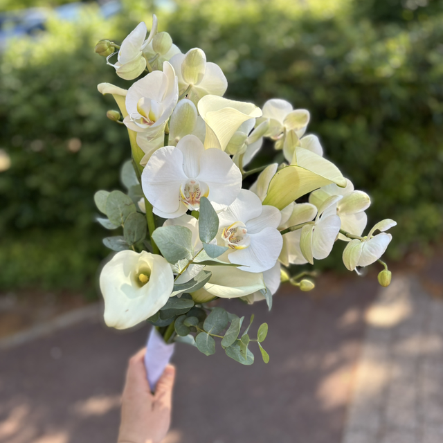 composé d’orchidée blanche, callas blanc et eucalyptus